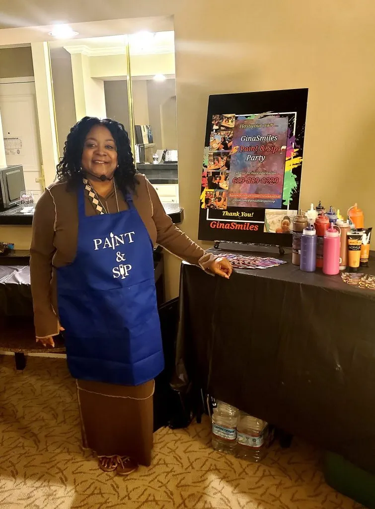 Whether it’s helping you navigate a Home Purchase or creatively curating one of her famous “Smile & Sip” events. Gina Thompkins has been a servant to her community for over 20+ years. “I am a native San Diegan who loves Real Estate and Painting. There is something about putting a paint brush in your hand that feels empowering.” – Gina T With GinaSmiles Paint & Sip we start from a blank canvas to create your masterpiece! Don’t worry, I provide step-by-step instructions. I am with you all the way. You will create something magical. No Experience is required. Paint & Sip Parties are fun for any occasion and all ages. Invite your friends, serve some wine and appetizers, or not and I will bring all of the painting supplies. Prepare to have a good time. Let’s Paint! Want to know more? Click Below